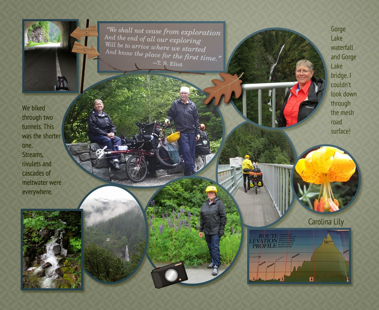 The climbs in the west were long but they were also steep and amazed us with the difficulty. And they come right away in the trip. The tandem was probably not the best bike to do a cross country tour on. Loaded with panniers and us it is really difficult to do hills, much less mountains. Dave thinks his Achilles Tendonitis started when we were walking, pushing the tandem on the road to Rainy Pass. We didn't train for that!